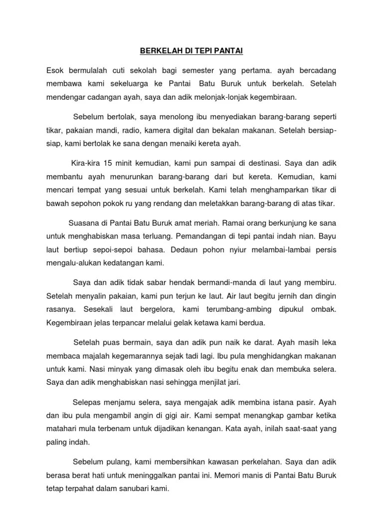 Barang makanan dan berkelah di bawah sepohon pokok rendang.pemandangan di tepi pantai sungguh indah.pasir. Video ini cikgu kongsikan cara bagaimana membina ayat berdasarkan gambar yang diberikan.kita boleh menggunakan teknik . Contoh karangan pengalaman pulang ke kampung. Karangan berkelah di tepi pantai. Gambar dengan telefon pintar yang canggih untuk dijadikan kenangan. Aktiviti di tepi pantai gambar rajah berlabel. 60 contoh karangan 10 ayat pdf malay language language learning.
